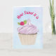 Eine Geburtstagskarte mit einer süßen Nachricht innen. Im Text von außen steht: Wie süß es ist. Entworfen mit einer Illustration eines leckeren Kuchens mit rosa Wirbel und einer Beere mit Blätter im Zuckerguss eingebettet. Set auf hellblauem pastellfarbenem Aquarell.