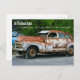 Eine humorvolle Postkarte mit einem alten, verprügelten, Wrack eines Autos, nur ein wenig schüchtern, fahrtauglich zu sein, Nicht!