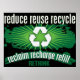 Erweiterte Version von reduzieren, wiederverwenden und gerecycelt Nachricht mit Rückgewinnung, Aufladen und Nachfüllen hinzugefügt! Grosses recycelnd Symbol in der Mitte. Beliebte und einzigartige recycle Geschenke!