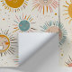 Mit dieser hübschen, schmucken, schwarzen und weißen Tapete, die mit einem strahlenden Sonnengeflecht dekoriert ist, können Sie jeden Raum aufhellen. Dieses charmante Muster zeigt fröhliche Sonnen in verschiedenen Pastellfarben Gelb, Rosa, Blau und Beige, jeweils mit einem einzigartigen und fröhlichen Ausdruck. Die spielerischen und freundlichen Gesichter sind Set vor einem weichen, weißlichen Hintergrund, mit bunten Punkten übersät und schaffen eine fröhliche und einladende Atmosphäre. Diese herausnehmbare Tapete ist nicht nur reizvoll, sondern auch praktisch und bietet eine einfache Installation und Entfernung, ohne Ihre Wände zu beschädigen. Ideal für ein Kinderzimmer, ein Spielzimmer oder jeden Raum, der eine Touch von Sonne und Glück nutzen könnte.