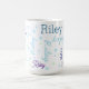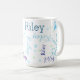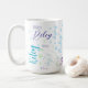Wiederholt kleine blassgrüne und blaue Herzen gemischt mit Ihrem gewählten Namen. Was diese Kaffee-Tasse auszeichnet, ist die personalisierte Touch Ihres Namens, die stilvoll auf die weiße Oberfläche gelegt wurde. Der wiederholte Name bildet ein anmutiges und harmonisches Muster und verleiht dem Produkt einen einzigartigen Charme. Eine schöne und feminine Typografie-Design, um sie zu schenken.