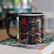 Fügen Sie der Vorlage Ihren speziellen Namen hinzu, um eine coole schwarze Tasse zu erstellen... Der Name, den Sie schreiben, verwandelt sich in ein wunderschönes Muster verschiedener Schriftart-Stile und -Farben.