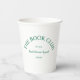Das grüne Buch Club Wappen "Read Discuss Repeat", Papierbecher. Personalisieren Sie sich mit dem Jahr und der Lage Ihres Buchclubs. Ideal für eine lokale Ansammlung des Buchclubs. Entworfen, um der Book Club Collection zu entsprechen.