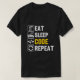 Ein lustiges und spielerisches Design für Programmierer, mit dem Zitat "Eat Sleep Code Repeat". Perfekt für alle, die sich für Programmierung und Technologie begeistern.