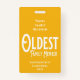 Es macht Spaß, mit Ihrer Familie zusammenzukommen und sich wieder zu verbinden, Geschichten zu teilen und über Familiengenealogie zu lernen. Es macht auch Spaß, eine Preisverleihung bei Ihrer Wiedersehen Ansammlung zu haben. Hier finden Sie einen witzigen Wiedersehen Award Button für die gelbe und weiße Familie für das älteste Familienmitglied. Geben Sie Ihren Familiennamen und das Veranstaltungsjahr ein. Die Auszeichnungen können ihr Abzeichen der Ehre bei Ihren aktuellen und zukünftigen Wiedersehen der Familie tragen. Mit dieser lustigen und modernen Auszeichnung respektieren Sie Ihre Ältesten.