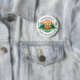 Einzigartige Camping-Knöpfe für die Wiedersehen. Das Design besticht durch einen Vintagen Sonnenuntergang mit drei Camping-Zelten in einem Wald in der Nähe eines Sees. Die Vorlage macht es einfach, mit dem Familiennamen und einem Jahr zu personalisieren.