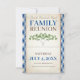 Diese lustige Wiedersehen Save the Date-Einladung wird mit einem blauen Picknick-Tischdecken-Design mit einem grünen Parkbaum geschmückt. Die Grilldetails sind Set in einem kühnen Sans Schriftart in blau und braun. Das Vintage Papierdesign wird auf die Rückseite Ihrer Familienausflugsankündigung übertragen. Ideal für Ihr Party im Sommer, Grillen im Hinterhof, Kochkunst, Ansammlung oder was auch immer Sie wollen. Dies ist ein einzigartiges Design von hoher Qualität. Um mehr Gingham Einladungen zu sehen, besuchen Sie VG Invites auf www.zazzle.com/vginvites Victoria ist ein beruflicher Einladungs-Designer in Jupiter, FL in der Nähe von West Palm Beach.