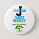 Personalisiert mit (beliebigem) und (beliebigem) Familienfeiern ist, was manchmal ein einmaliges Ereignis im Leben ist. Schwarze, blaue und gelbe, fette Schriftart auf weißem Hintergrund. Wir feiern unsere Wurzeln im schwarzen Skript-Schriftart mit einem Stammbaum darunter.