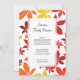 Personalisieren Sie die saisonale Herbstleaves Familie Wiedersehen Einladung, Verwandte zu Ihrer September, Oktober oder November Party Ansammlung einladen. Dieses elegante Herbstinselpaket besticht durch rote, orange und gelbe Herbstlaube mit weißem Hintergrund. Erhältlich als gedruckte Einladung zum Verschicken oder als digitaler Download für den einfachen digitalen Austausch online.
