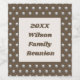 Personalisieren Sie Ihr nächstes Wiedersehen-Dinner mit diesem preiswerten Weinflaschenlabel. Das Polka Dot Muster zeigt silberne Kreise auf dunkelbraunem Hintergrund. Ein großes Rechteck in der Mitte ist braun und beige und bietet einen soliden Hintergrund für Ihre personalisierten Wiedersehen-Informationen. Schnell und einfach das Jahr und Ihren Familiennamen anpassen. Diese Weinflaschen-Etiketten bieten auch eine einfache und einmalige Möglichkeit, für Ihre Wiedersehen-Gäste Keepsakes zu kreieren.