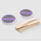 Runde Wiedersehen-Abzeichen in Grau und lila mit weißen und grauen Konturen bestickt. Personalisieren Sie dieses Sake-Geschenk mit Ihren Veranstaltungsdetails.