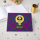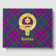 Clan Wardlaw Wappen Abzeichen umgeben von einem Gurt und Schnalle über Tartan Hintergrund. Benutzerdefinierter Vorder-, Rücken- und Rückentext.