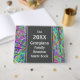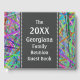 Dieses Wiedersehen Gästebuchdesign zeichnet sich durch farbenfrohe Linien aus, die farblich variieren, zusammen mit einem individuell anpassbaren Jahr und Familiennamen.