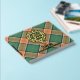 Clan Pollock Wappen Abzeichen umgeben von einem Gurt und Schnallen über dem Hintergrund des Tartanes. Benutzerdefinierter Vorder-, Rücken- und Rückentext.