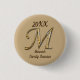 Diese Schaltfläche bietet eine einzigartige Möglichkeit, Ihre nächste Wiedersehen-Familie zu personalisieren. Der runde Knopf weist eine große M-Monogramm aus Gold und Silber auf. Dieses elegante, familiengeführte Hotel M ist zentriert und von einem Jahr und dem Namen Ihrer Familie umgeben. Personalisieren Sie den gesamten Text schnell und einfach.