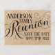 Wiedersehen-Kartendesign Familiendesign, bitte personalisieren Sie den Text auch auf der Rückseite.Kreative Schrift, Pergamentpapier Hintergrund.