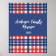 Roter, weißer und blauer Gingham mit personalisiertem Wiedersehen-Text.