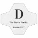 Personalisieren und fügen Sie Ihren Monogramm-Buchstaben, Familiennamen und das Wiedersehen-Jahr Ihrer Familie hinzu. Schwarze Buchstaben. Weißer Hintergrund.
