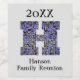 Weinflaschen-Etiketten sind preiswerte Wege, um Ihre nächste Veranstaltung zu personalisieren. Dieses Wiedersehen-Weinetikett mit einem großen Mosaik- oder Buntglasbuchstaben H in lila, blauen und schwarzen Farbtönen. Das Jahr und Ihr Familienname können schnell und einfach personalisiert werden. Das gesamte Design ist Set vor einem hellblauen lila Hintergrund, der auch angepasst werden kann, wenn Sie wollen.