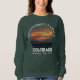 Das Wiedersehen-Matching-Design bietet einen Sonnenuntergang über dem Gebirgsbild mit weißem Fettdruck und Skripttext für Familienname, Staat, Aktivität und Jahr. Ideal für Familien, die sich treffen und Liebe mit passender Kleidung tragen.