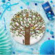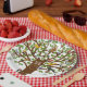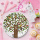 Kreative Wiedersehen-Party-Teller mit Familienbaum gefüllt mit lustigen bunten Cartoon-Vögeln. So personalisieren Sie Text bearbeiten, um Familiennamen hinzuzufügen oder anderweitig anzupassen.