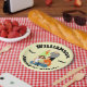 Wiedersehen-Papier-Teller der Familie. Personalisieren Sie die Hintergrundfarbe für den Schriftart des Namens. Ideal für pinics bbqs Beach Party.