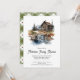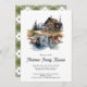 Wiedersehen Rustikale Waldhütte Einladung - mit einer rustikalen Hütte umgeben von majestätischen Kiefern, einem Berg im Hintergrund ein naher Wasserfall und Bach. Ideal für Ihre Wiedersehen- oder Outdoor-Veranstaltung.