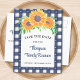 Planen Sie eine Wiedersehen? Lass Deiner Familie das Wiedersehen-Datum mit diesen charmanten Save the Date Postkarten. Sie sind mit Sonnenblumen in Aquarelltönen und blauen Karos dekoriert. Einfach anpassbar. Original Wasserfarbe © Michele Davies.