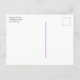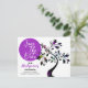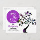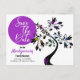 Diese Wiedersehen-weiße "Save the Date" Typografie ist Set in violettem Kreis auf der links Seite der Postkarte. Die rechte Seite des Frontdesigns ist mit einem Jugendstil-Baum mit verschiedenen Farbtönen an den Blume ausgestattet. Füllen Sie die Felder der Vorlage für persönliche Informationen für die Vorder- und Rückseite, entfernen Sie Text und/oder klicken Sie auf Anpassen, um eine Schriftfarbe, -größe und -stil auszuwählen, die Sie bevorzugen.