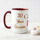 Weiße Tasse feiert 30 Jahre Wiedersehen, alles in Schulfarben.