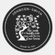 Personalisieren Sie Ihre Daten mit Familienname und Datum Ihrer Wiedersehen oder gewollt Text. Das Design enthält einen Stammbaum, den Familiennamen und das Datum der Wiedersehen auf schwarzem Hintergrund. Das Zitat ist familienorientiert und sagt, dass die Wurzeln eines Stammbaumes mit der Liebe von zwei Herzen begann. Diese sind ideal für Pakete und Umschläge.