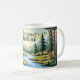 Trinken Sie Ihr Lieblingsgetränk und verbinden Sie sich mit der Schönheit der Natur. Diese ruhige Tasse zeichnet sich durch eine friedliche Waldlandschaft mit hohen Kiefernbäumen, einem fließenden Fluss, sanften Hügeln und sanften Wildtieren wie Hirsche und Schmetterlinge aus. Mit der Phrase "Mit der Natur neu verbinden" gegen einen strahlenden Sonnenaufgang ist es eine perfekte Erinnerung, die Natur zu verlangsamen und zu schätzen. Ideal für Naturliebhaber, Wanderer und Öko-bewusste Soule.
