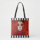 Gestreifte Schwarzweiss-Tasche mit Roter Rose betonte calavera Mädchen auf einer Seite