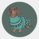 Wiener-Hund-Weihnachten-Hässlicher-Pullover-Dachsh Runder Aufkleber