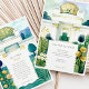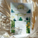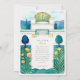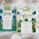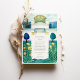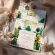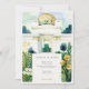 Mit dieser exquisiten Hochzeitssuite laden Sie Ihre Gäste zu einem unvergesslichen Anlass ein. Hier finden Sie eine wunderschöne Aquarellillustrierung des berühmten Wiener Secession Gebäude. Die Vorderseite zeigt die berühmte goldene Lorbeerkuppel des Gebäude (oft auch als "goldene Kohlköpfe" bezeichnet) und die weiße Fassade, die in einem sanften, künstlerischen Aquarell-Stil gehalten ist. Die Szene ist elegant gerahmt durch stilisierte, dunkelblaue Bäume und üppiges grünes Blattwerk, mit fröhlichen goldgelben Blumen und knusprigen weißen Gänseblumen. Die Rückseite, die für "The Finer Details" entworfen wurde, setzt dieses raffinierte Wiener Thema fort und bietet einen ergänzenden Blick auf den großen Eingang des Gebäude und die gleichen wunderschönen botanischen Elemente. Das Zusammenspiel von ruhiger Blues, reichen Grüntönen, leuchtenden Weißen und strahlenden Golden schafft ein wirklich faszinierendes Design. Diese Einladung eignet sich ideal für eine Hochzeit in Urlaubsort in Wien, ein Jugendstil- oder Jugendstil-Fest oder für alle, die Kunst, architektonische Schönheit und zeitlose europäische Eleganz für ihren besonderen Tag schätzen.