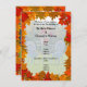 Fügen Sie Ihre Herbst Hochzeitsinformationen zu dieser schönen Karte hinzu. Der gesamte Text ist so einstellbar, dass Schriftart und Farbe verschoben, verändert und verändert werden können. Konvertieren Sie dies für jeden Anlass. In der Mitte der Wiese befindet sich ein weißer antiker Tisch mit Stühlen. Auf dem Tisch steht ein Blume-Pott mit roten Blume. Im Hintergrund befinden sich die Bäume, die sich mit dem frühen Herbst zu verändern beginnen.