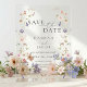 Machen Sie mit dieser aus Acryl gefertigten floralen "Save the Date"-Karte einen atemberaubenden ersten Eindruck, die modern, romantisch und unvergesslich wirkt. Gedruckt auf klarem Acryl für ein elegantes, zeitgenössisches Aussehen, zeigt dieses Design einen zarten Rahmen aus weichen pastellfarbenen Blüten in Rosa-, Pfirsich-, Lavendel- und Buttergelb-Tönen. Der luftige Blumenrahmen umgibt elegante Serif- und Skript-Typografie für eine zeitlose und dennoch trendige Präsentation.