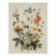 Eine lebhafte Ansammlung von Wildblumen in Blautönen, Weiß, Gelb, Orange und Rosa steht elegant mit zartem grünem Laubwerk. Diese klassische botanische Illustration fängt den frischen Charme einer Sommerwiese auf einem weichen neutralen Hintergrund ein und weckt natürliche Schönheit und Ruhe. Perfekt für Küchenwandkunst, Leinwanddrucke, Grußkarten, Kissen, Tassen und Wohnaccessoires, die sanfte ländliche Serenität in jeden Raum bringen.