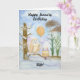 Soft and serene, this hand-painted watercolor captures a Snowy Owl resting on a winter branch beside a layered vanilla birthday cake topped with gentle purple frosting and glowing candles. Ivy-covered trees in the background add a quiet January charm, making this a sweet and thoughtful birthday scene created especially for a wife who loves birds, nature, and peaceful winter moments.