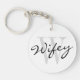WIFEY Schlüsselanhänger für wedding Braut- und Jungvermählten-Ehefrau. Niedlicher Schwarzweiss-Monogrammentwurf mit stilvoller Skripttypographie. Lustiges zusätzliches Flitterwochengeschenk der Schlüsselkette für gerade verheiratete Frauen. Schwarzweiss-Farben.