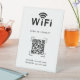 Professional WiFi access starts at reception. This sleek tabletop sign displays your QR code and login details for instant guest connectivity. Place it at your front desk, lobby, or waiting area to give clients, patients, and visitors seamless internet access without staff interruption. Customizable with your network name, password, and QR code for helpful first impression.