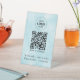 Ein modernes und einfaches schwarzes Tafelschild, das Ihren Kunden, Kunden und Gästen eine einfache Verbindung zu Ihrem WiFi-Netzwerk ermöglicht. Laden Sie Ihren QR-Code und Ihr Logo hoch und fügen Sie weitere Details wie Ihren Netzwerknamen und Ihr Passwort in weißer Schrift hinzu.
