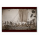 Vintage Abbildung eines vikenden Langbootes aus dem 19. Jahrhundert. Handgezeichnetes Bild von Wikings, die ein gemastetes Boot umrunden. Kunstwerk von Anker Lund.