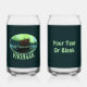 Ein leicht stilisiertes Bild eines Wikinger-Langschiffs in einem ovalen Gebiet, das nachts unter den Nordlichter segelt, dort einige Eisberge; die meiste Crew schläft. Text liest "VIKINGAR" (Wikings) wird ebenfalls angezeigt. Passen Sie Ihren eigenen zusätzlichen Text auf der Rückseite an.