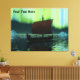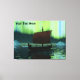 Ein leicht stilisiertes Bild eines viking-Langschiffs, das nachts unter den Nordlichter segelt, gibt es einige Eisberge; die meiste Crew schläft. Fügen Sie Ihren eigenen Text hinzu.