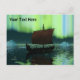 Ein leicht stilisiertes Bild eines viking-Langschiffs, das nachts unter den Nordlichter segelt, gibt es einige Eisberge; die meiste Crew schläft. Fügen Sie Ihren eigenen Text hinzu.