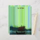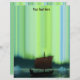 Ein leicht stilisiertes Bild eines viking-Langschiffs, das nachts unter den Nordlichter segelt, gibt es einige Eisberge; die meiste Crew schläft. Passen Sie Ihren eigenen Text an.