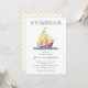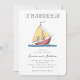 Celebrate the start of a wild new adventure with this charming Where the Wild Things Are inspired baby shower invitation featuring Max sailing in his iconic red boat across gentle blue waves. The soft watercolor illustration captures the magic of childhood imagination, complete with golden sails, a tiny crown pattern on the back, and the playful phrase Let the Adventure Begin at the top. This baby shower invitation design blends storybook nostalgia with a modern, minimalist layout, making it perfect for parents who love classic childrens literature and whimsical woodland themes. Ideal for a baby boy shower or gender neutral celebration, this invitation sets the tone for a sweet and adventurous gathering.
