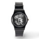 Uhr, Klassische Damenuhr mit schwarzen Lederarmband