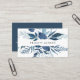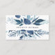 Chic botanische Visitenkarten zeichnen Ihren Namen oder Firmennamen aus, flankiert von einem oberen und unteren Rand gemalten botanischen Aquarellfarben-Blätter in coolen Himmel- und Marinebönen. Fügen Sie Ihre vollständigen Kontaktdaten auf der Rückseite in Weiß am Hafen blau hinzu.